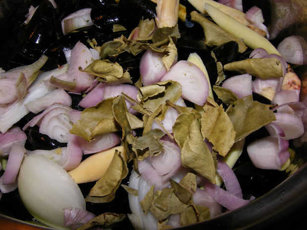 4 hojas de lima kaffir las hojas, frescas o secas, groseramente roto o como es
