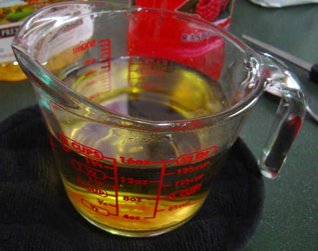 Vierta 2 tazas de jugo de manzana en la botella * asegurándose de dejar 1 a 2 pulgadas de espacio vacío en la parte superior * (puede necesitar un poco menos de 2 tazas).