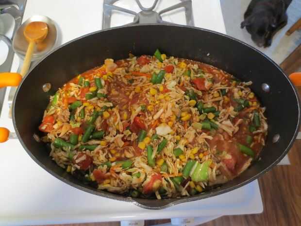 este es un guiso muy fácil estilo pollo y sopa de verduras que hace uso de hortalizas de verano mejor (y más prolíficos).  Realmente es una excelente manera de mostrar a todos el verano fantástico producto disponible en su jardín o en el mercado de a