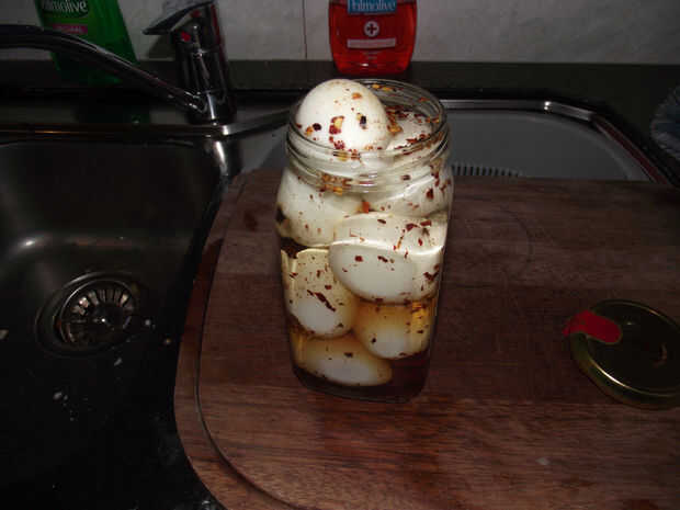 siempre me ha gustado encurtidos, como un niño mi madre apodado me 'salmuera' debido a mi amor de cebollas en escabeche.Mi papá solía disfrutar de huevos en vinagre. A menudo él tendría como aperitivo con una bolsa de patatas fritas, que parece ser u