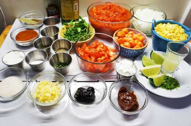 Ingredientes (todo frescos) 2 libras (un poco menos de 1 kilogramo (0,907 kg)) de jitomate orgánico) se puede utilizar en conserva si los tomates son de temporada, saben mejores que los tomates de invierno.