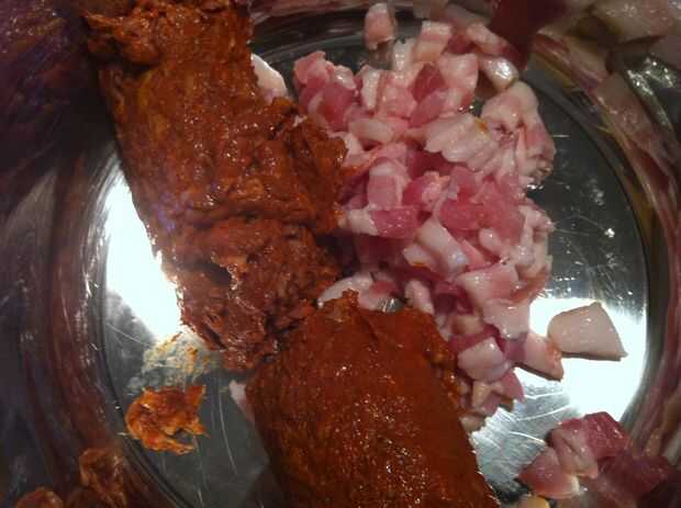 Picante tocino Chorizo Chile (1 / 3 paso)