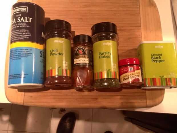 1 rojo y verde pimiento (pimiento rojo es sólo para el color, el verde es para el gusto, pero no uso mucho causa será totalmente sobre todo poder en el bote y eso no es bueno)