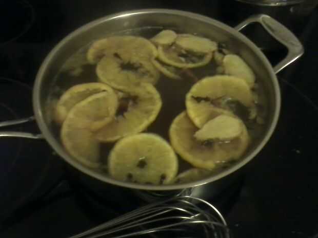 Agregar naranja, jengibre, canela, canela molida, pimienta de Jamaica, clavo de olor y azúcar morena para el zumo de manzana.
