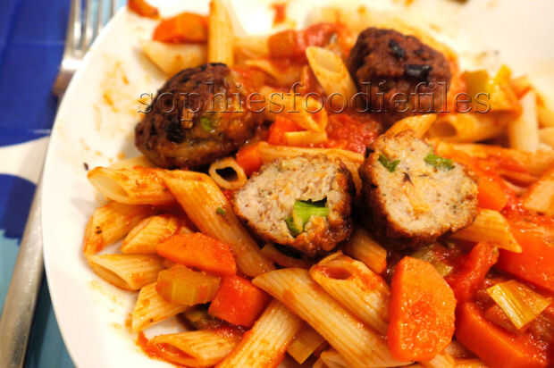 Lo encontrarás también aquí en mi blog: http://sophiesfoodiefiles.wordpress.com/2015/03/15/spiced-chicken-meatballs-with-tomato-sauce-spelt-penne/