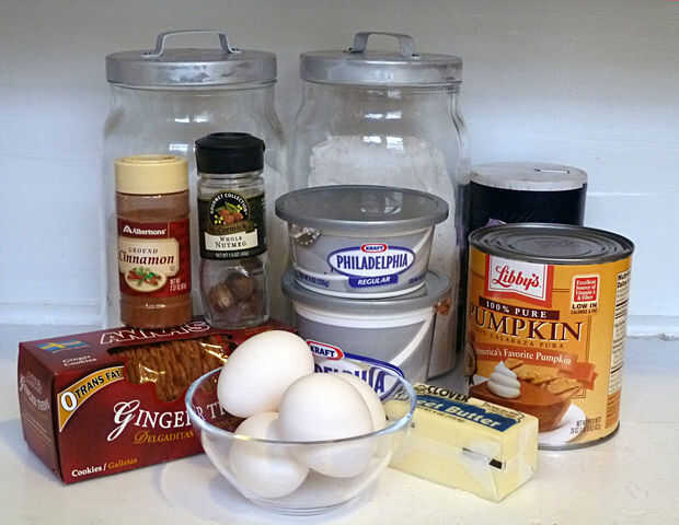 Calabaza y queso crema!!! ¿No suena delicioso?Tratar a los miembros de su familia con estas barras de pastel en este Halloween/Thanksgiving :)Paso 1: ingredientes Para masa base:100g galletas (para mejor sabor base la corteza use galletas de jengibre