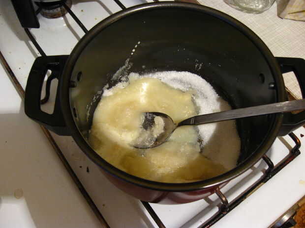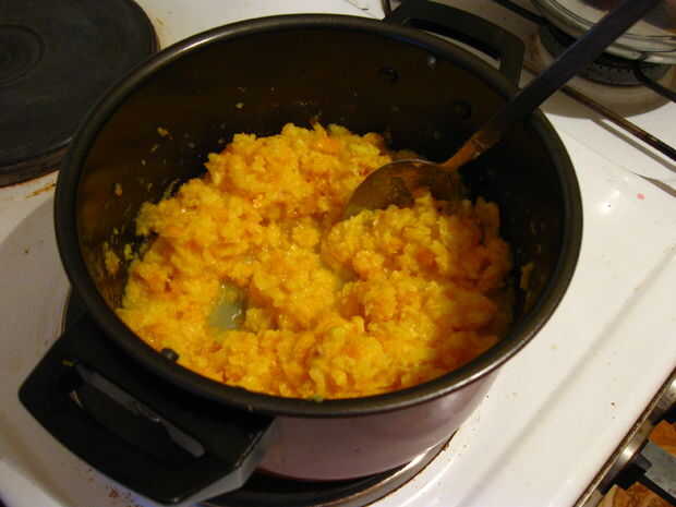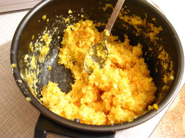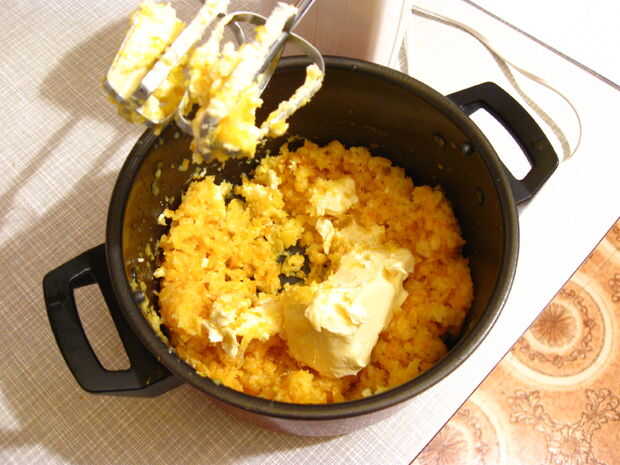 Durante ese tiempo, cocinar el azúcar con crema dulce. Añadir tierra naranja con cáscara.