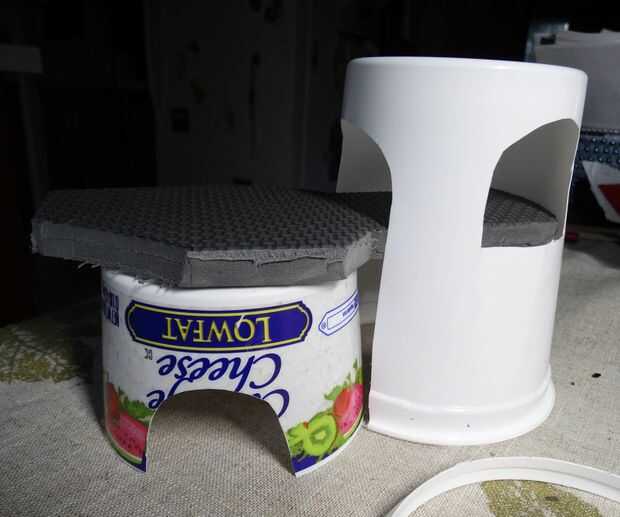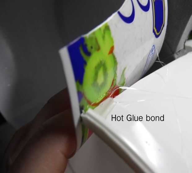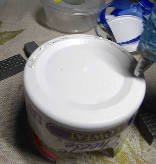 Use una línea rápida de pegamento caliente para adherir el borde de la cubierta redondeada en el interior de la taza grande y también los principales puntos de contacto de los dos contenedores de bonos. Hacer un lazo en la parte inferior proporciona la máxima estabilidad, pero que se aconseja poner pegamento en la parte inferior / borde de sí mismo, especialmente si usted tiene un bajo el tanque calentador.