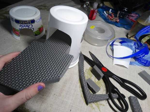 Chatarra de espuma mat piso parecía un gran material para mi deck y pasos. Aparte de ser una sustancia resistente y ligero que también ofrece una buena textura para garras agarrar, la simple mirada plana contra asaltos encajan perfectamente con la estética de los Picapiedra.