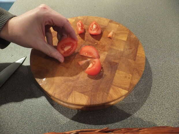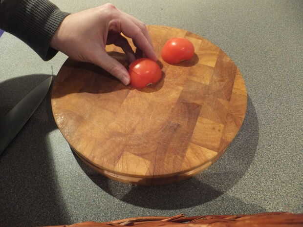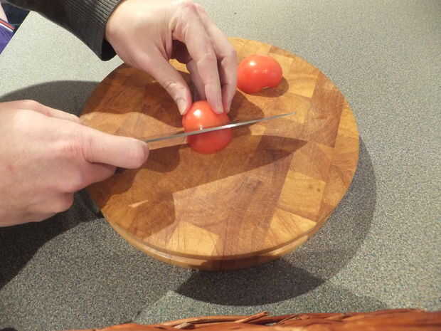 - Picar el tomate por la mitad de arriba a abajo (imagen 1)