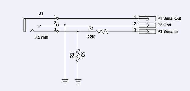 También se adjunta es el diagrama del circuito para conectar el conector de programación de PICAXE y un cuadro con los detalles que muestra cómo cablear es 3 clavijas en serie, serie a y tierra.