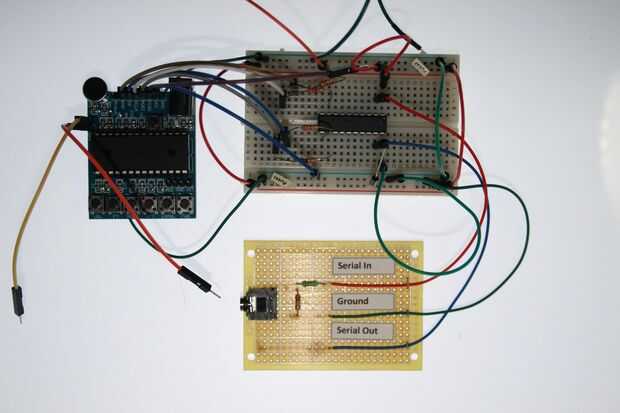 Para este proyecto sólo construí el circuito en un protoboard. En la imagen, verá que el ISD1760 está conectado a un C.I de PICAXE 20 X 2 en un protoboard utilizando macho a los cables de puente mujer.