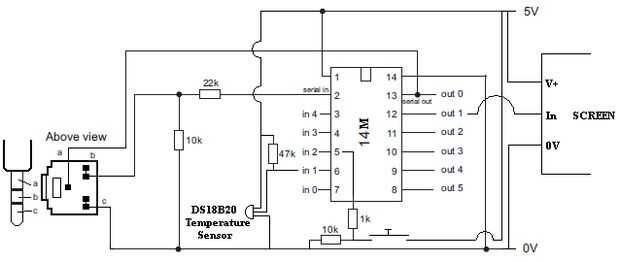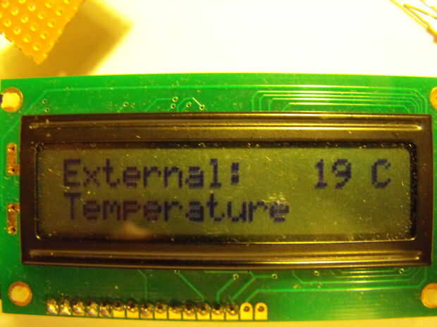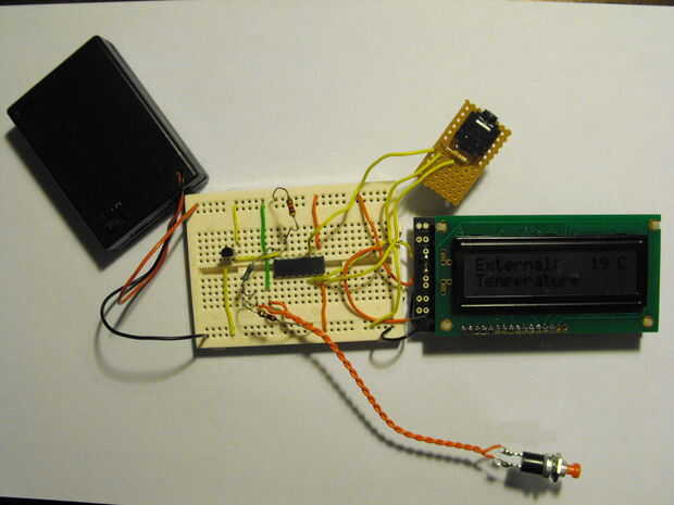 Este es un termómetro que hice para que nuestra autocaravana, para mostrar la temperatura exterior. Se basa en un chip Picaxe ya que son baratos y fáciles de usar.