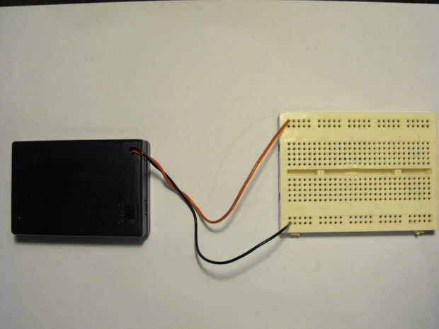 Paso 1: Conecte la batería a los dos fuera de pistas en la placa.