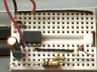 Una vez este programado el PICAXE, desconecte la alimentación. Tienes que conectar el 7805 (o 78L 05) en el protoboard. Si utiliza el 7805 más grande, puede soldar los cables cortos, sólidos al IC y usar esos cables para su inserción en el protoboard. Un 78L 05 debe encajar en algún lugar en el área vacía de la protoboard. Esencialmente, la "entrada" se tiene que el 6V positivo de la batería de la linterna, la salida irá a la placa PICAXE para + 5V y la conexión de GND será común para el PICAXE y negativo de la batería "-" terminal. Si tienes una batería atornillada, las conexiones será fáciles, que si tienes una batería de primavera-contacto, necesita soldar los cables a los resortes. Interruptor no es usa ya que se trata de un circuito de siempre, pero usted puede Agregar un interruptor si quieres en el cableado entre la batería + terminal y la entrada al 7805 / 78L 05. Aquí es cómo está todo conectado: http://t2.gstatic.com/images?q=tbn:ANd9GcTNahVOfCj7-6kIHfjXnXJtyLZKU2FxpIvBKf-NCz7abudvh3gt excepto en nuestro caso no utilizaremos el condensador de 100nf entre pin 1 y pin 2 y utiliza un condensador electrolítico más grande porque está fácilmente disponible en Radio Shack, pero no dudes en utilizar casi cualquier valor de entre 10uF y 500uF electrolítico siempre y cuando el voltaje está valorado en más de 10V.