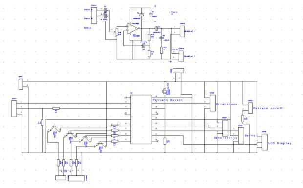 El hardware dentro de este circuito implicado un IC de Picaxe de 18 M 2 que es el microcontrolador programable en mi diseño que puede ser programado usando un PC, un IC TDA2003V también se utiliza en el circuito que se utiliza como un amplificador de audio para amplificar la señal de audio procedente de un reproductor de música conectado a través de un conector de audio de 3,5 mm. Hay también muchos de los componentes de la placa como un módulo de pantalla LCD y 3 potenciómetros conectados a la placa de circuito usando conductores volando. Este circuito fue diseñado en el software llamado "Easy PC" primero como un diagrama a continuación como un diseño de PCB, esto fue un largo proceso para diseñar el circuito como compacto como sea posible sin necesidad de cables de cualquier puente en el diseño pero creo que el diseño como compacto como sea posible sin necesidad de cables de puente adicional.