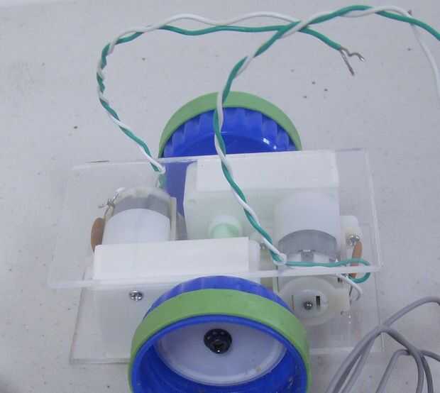 Alinee el borde posterior de la cubierta superior con el borde posterior de la cubierta inferior. Si su cubierta superior e inferior son el mismo ancho de izquierda a derecha, los bordes exteriores de los dos motorreductores deben estar alineados con los bordes de la cubierta superior. Fije la cubierta superior a los motores que utilizan la cinta de doble cara espuma.