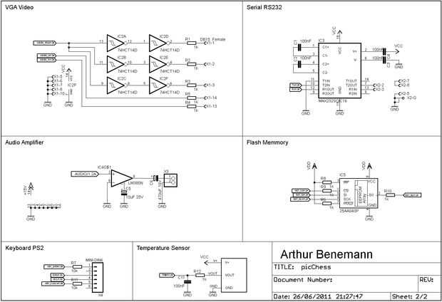 - VGA la señal su compuesto de 2 señal TTL, sólo un resistor para establecer interfaz y tres analógica RGB señales. La impedancia de entrada de un monitor es de 75 Ohms así que encajaría en una resistencia, pero la señal debe tener una amplitud de 0,7 para la intensidad total en la pantalla, por ohmios ley este da 9.3mA más que la corriente máxima del procesador. Un inversor 74HCT14 da la ganancia actual.