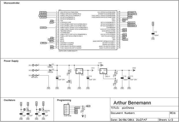 La alimentación tiene tres carriles de salida. Un 5V regulados por un 7805, para los chips de alta tensión. Un carril de 3v3 alimenta el procesador y la memoria flash, para conseguir 3c3 un LM317 se utiliza sólo como se describe en la hoja de datos. El amplificador está conectado a la fuente no regulada porque necesita el mayor voltaje para alimentar el altavoz.