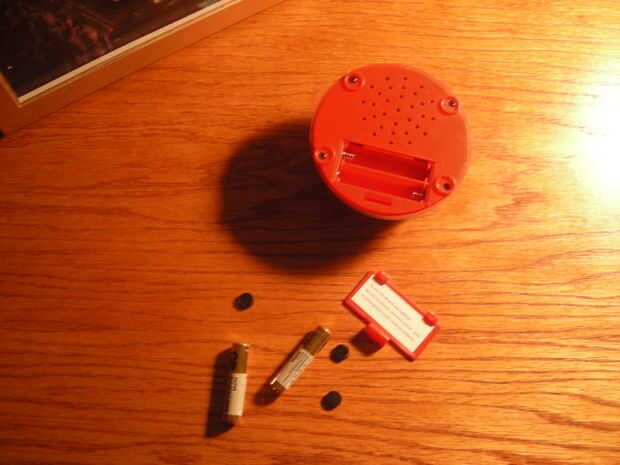 Empezar por quitar las patas de goma y las pilas de la parte inferior del botón fácil. Esto puede hacerse a mano. NO TE OLVIDES DE QUITAR LAS PILAS. NO HACERLO PUEDE RESULTAR EN UN CHOQUE ELÉCTRICO MÁS ADELANTE EN EL INSTRUCTABLE.