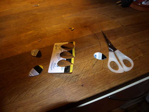 ¿Cansado de perder selecciones de la guitarra? Bueno, amigos, aquí está una manera rápida y fácil para hacer nuevas selecciones de tus viejas tarjetas de crédito. No tirar ese plástico! Cortarlas y ponerlas a usar como guitarra.Comienza con la toma d