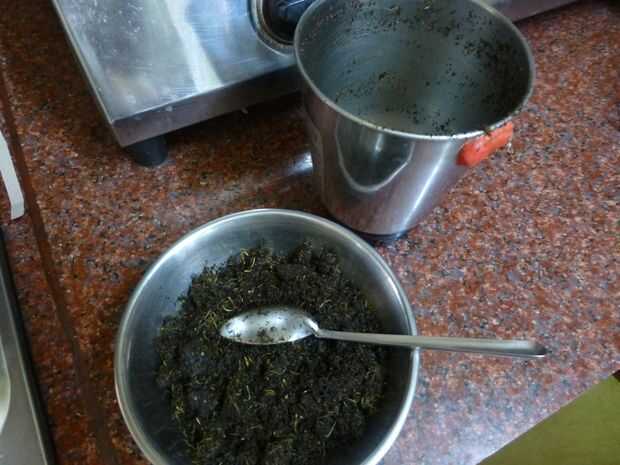 • Transferir la mezcla Gongura refrescada en una jarra picadora mezcladora.