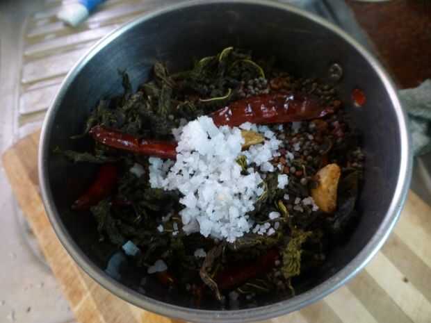 1 kg raw mango150 gm de dividir las semillas de mostaza100gm de dividir las semillas de alholvaPaso 1:semillas de hinojo 50 gm (tierra corasly)semillas de chernushki 50gm4 cucharaditas polvo de Chile rojo (Cachemira)Paso 2:2 cucharadas de cúrcuma1 ta
