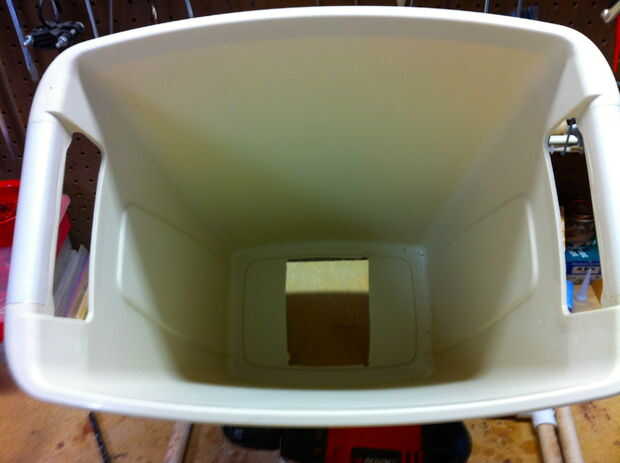 Corte un orificio adecuado en la parte inferior de la papelera.