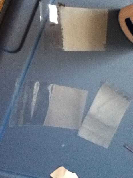 Corte tres tiras de cinta de embalaje que son aproximadamente tres veces la longitud de la hoja