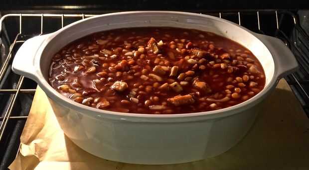 Lento al horno frijoles barbacoa y sur chorizo ahumado