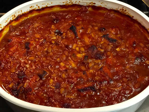 Lento al horno frijoles barbacoa y sur chorizo ahumado
