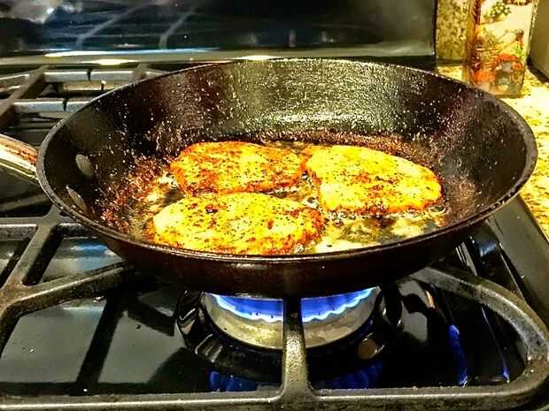 Añadir que las chuletas de la temporada la sartén, cocinar cada lado durante 4 a 5 minutos, o hasta dorado en el exterior, jugos salgan limpios y horquilla blanda. Retire de la sartén, escurrir sobre toallas de papel. Espere hasta que las chuletas han enfriado y corta en cubos pequeños.