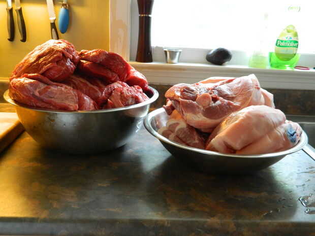 Me gusta una relación de 3:1, carne de res: carne de cerdo