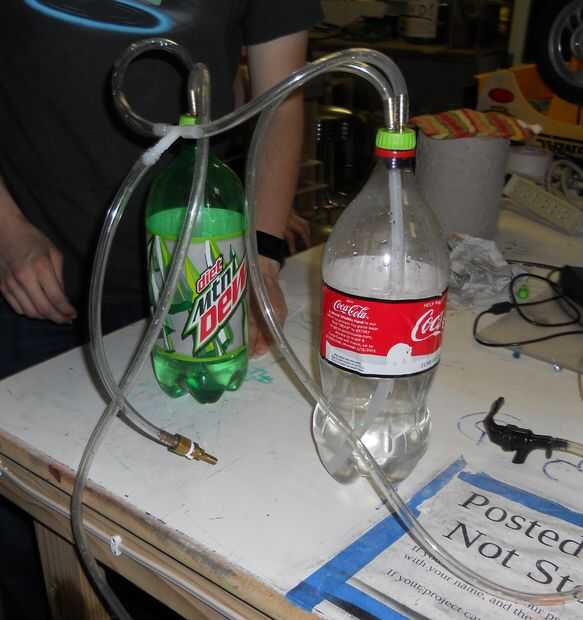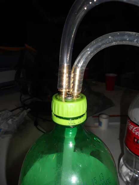 ¿Cómo se utiliza este artilugio loco, dices? ¡ Simple! Presión sobre las fuerzas del lado de la entrada líquido desde el lado de salida de aire. Idealmente usted puede conseguir un grifo de picnic 1/4 de pulgada de Amazon para controlar el flujo o puede controlar dependiendo de lo en la bomba. Si usted tiene una bebida carbonatada puede bloquear la entrada y la entrada de CO2 de la solución proporcionará la presión.