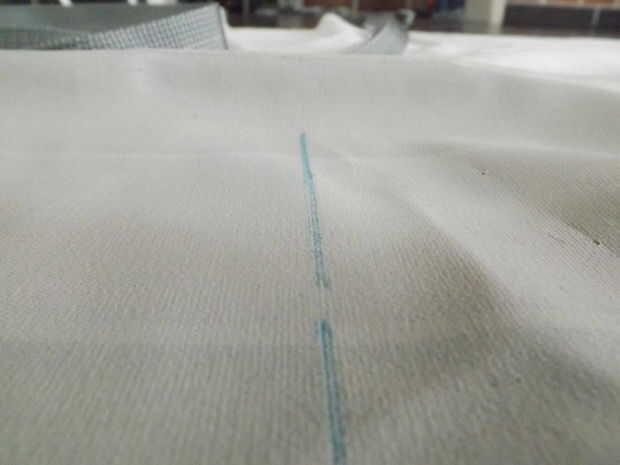 Al primero denotan las marcas verdes (altura de la cabeza a las caderas, medias fuera de la estera) en la estera.