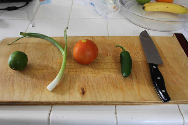 te doy mi receta de Pico de Gallo.  Esta una mezcla sencilla, deliciosa y nutritiva.  Disfrutar con patatas fritas o añadir a una variedad de comidas para ensalzar las cosas para arriba.Paso 1: Lo que necesitará Tools:CuchilloTablero de corteBol para