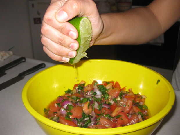 Picar bastante cilantro para producir alrededor de 1/2 taza, luego agregar a la taza y revuelva.