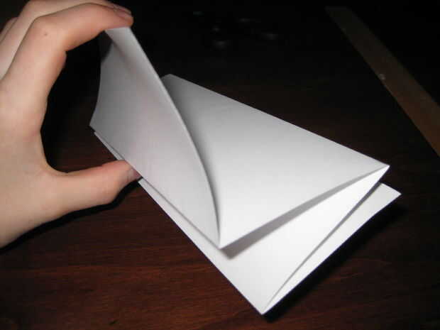 En primer lugar, sostener el papel, los lados cortos hacia arriba, los lados largos apuntando hacia los lados. Traer el borde derecho corto en donde es el centro del papel y lo pliegue. Luego hacer lo mismo con el lado izquierdo. Doblar los dos, así que tiene un pequeño acordeón como estructura. (Ver fotos)