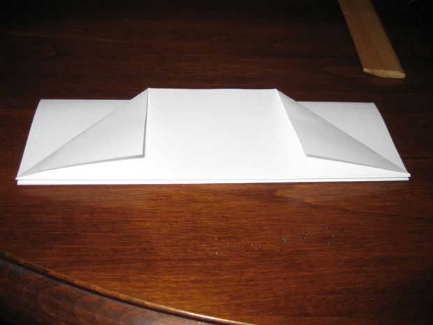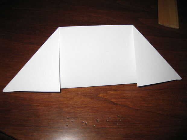 Después de doblar los lados hacia el centro, tome una de las esquinas y abatirla (haga el doblez por lo que es en el exterior), para que la parte inferior de la tapa es bastante cerca de la parte inferior del papel. Hacerlo con los cuatro puntos cardinales. La sección intermedia, que el que hizo cuando se dobla, debe estar desplegada y que se pega para arriba. Dobla ambas esquinas hacia abajo, igual que el resto. No importa qué camino usted dobla.