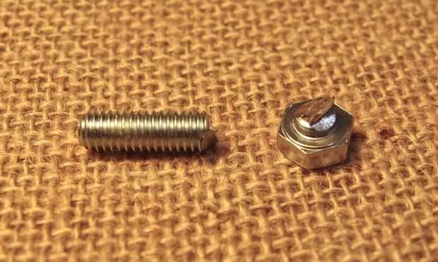 2. un tornillo de 6 mm largo 20 mm con el cabezal de corte o aserrado apagado (segunda foto), con una longitud de unos 18 mm.