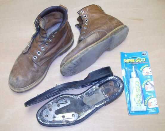varias abrazaderas para sostener golf zapato suela en la suela de la bota mientras goo es la creación