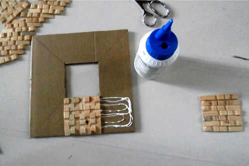 Si quieres tu cuadro para colgar en la pared, ponga un trozo de cadena en la pieza inferior de cartón con una aguja.