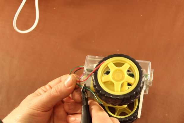 Debe soldar un alambre rojo en la conexión más cercana al caso en cada uno de los motores.