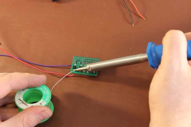 Suelde el cable rojo de clip de la batería en el orificio de V +.