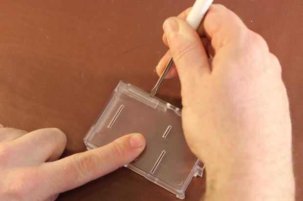 Pop a continuación, la ficha de expansión de la caja. Con un poco de fuerza con un destornillador, debe salir fácilmente.