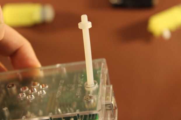 Montar los tornillos largos de nylon M4 y asegúrelos con las tuercas de nylon M4.