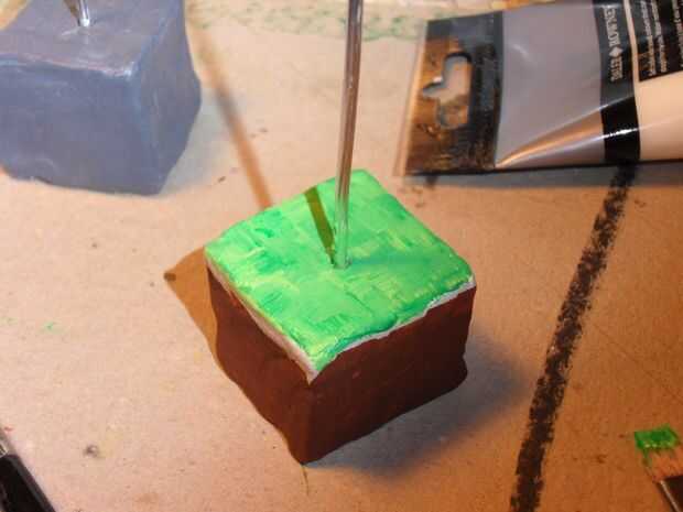 Pintar la tierra del bloque de hierba o la piedra del bloque de mineral de diamante en primer lugar, antes de agregar el detalle. No hacer el bloque de pasto como lo hice: pintura marrón alrededor (excepto la inferior), no sólo a los lados.
