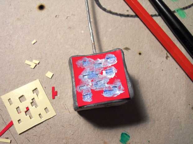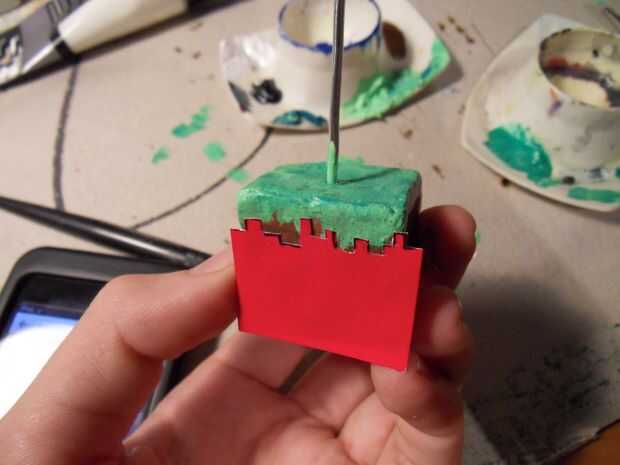 Dibuje la textura en la etiqueta, luego cortar con un cuchillo. Pegarlo sobre el lado del bloque. Ahora puede pintar sobre ella sin preocuparse por los bordes sucios. Sin embargo, si usted toma y observe que todavía hay bordes desordenados, o parte de la capa inferior de pintura consiguió sacar, simplemente pintar sobre él un poco para corregirlo.