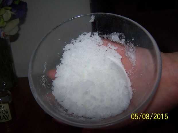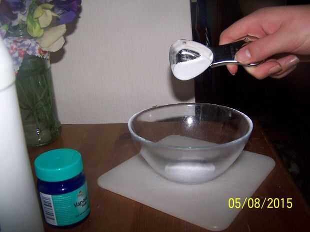 Mida el sal, aceite de oliva y vapor rub y añadir en el recipiente.