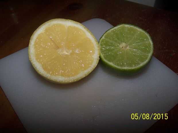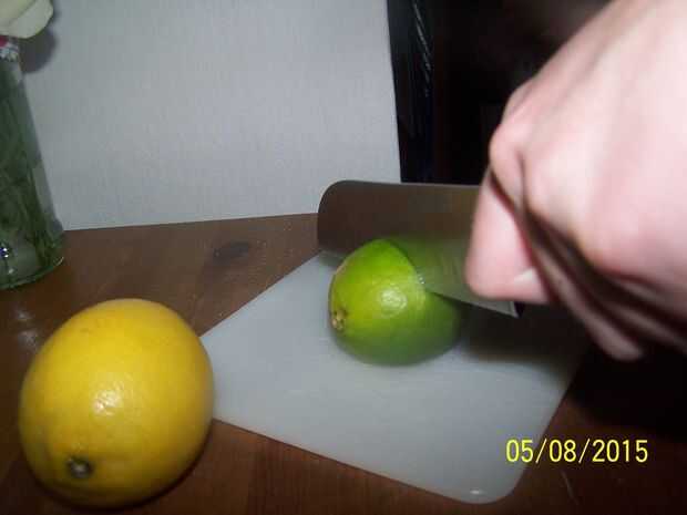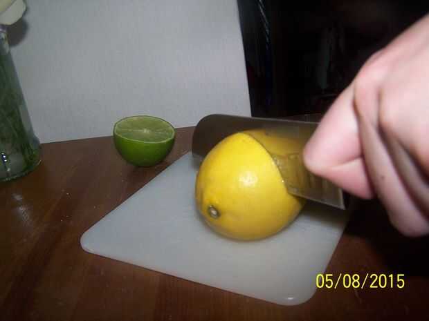 Cortar el limón y la Lima por la mitad, con cuidado puedo añadir (no quieres cortar los dedos, haz un chorro de limón o de cal a los ojos ¡ ay!)